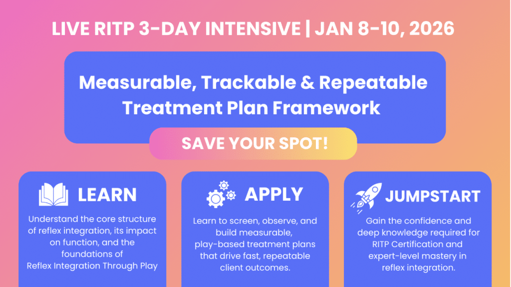 🎧 Listen to episode 41 now to to learn how to choose goal-aligned, play-based reflex integration exercises before jumping into just any universal at-home therapy routine.